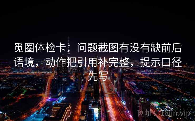 通过以上方法,我们可以更好地解决在使用觅圈体检卡过程中遇到的问题截图缺前后语境、动作引用不完整等问题,并且在使用过程中提示口径先写,确保信息的准确性和完整性。这不仅能提高我们的健康管理效率,还能更好地保护我们的健康权益。通过学习使用技巧,我们可以更好地利用这个工具,实现更加科学和有效的健康管理。